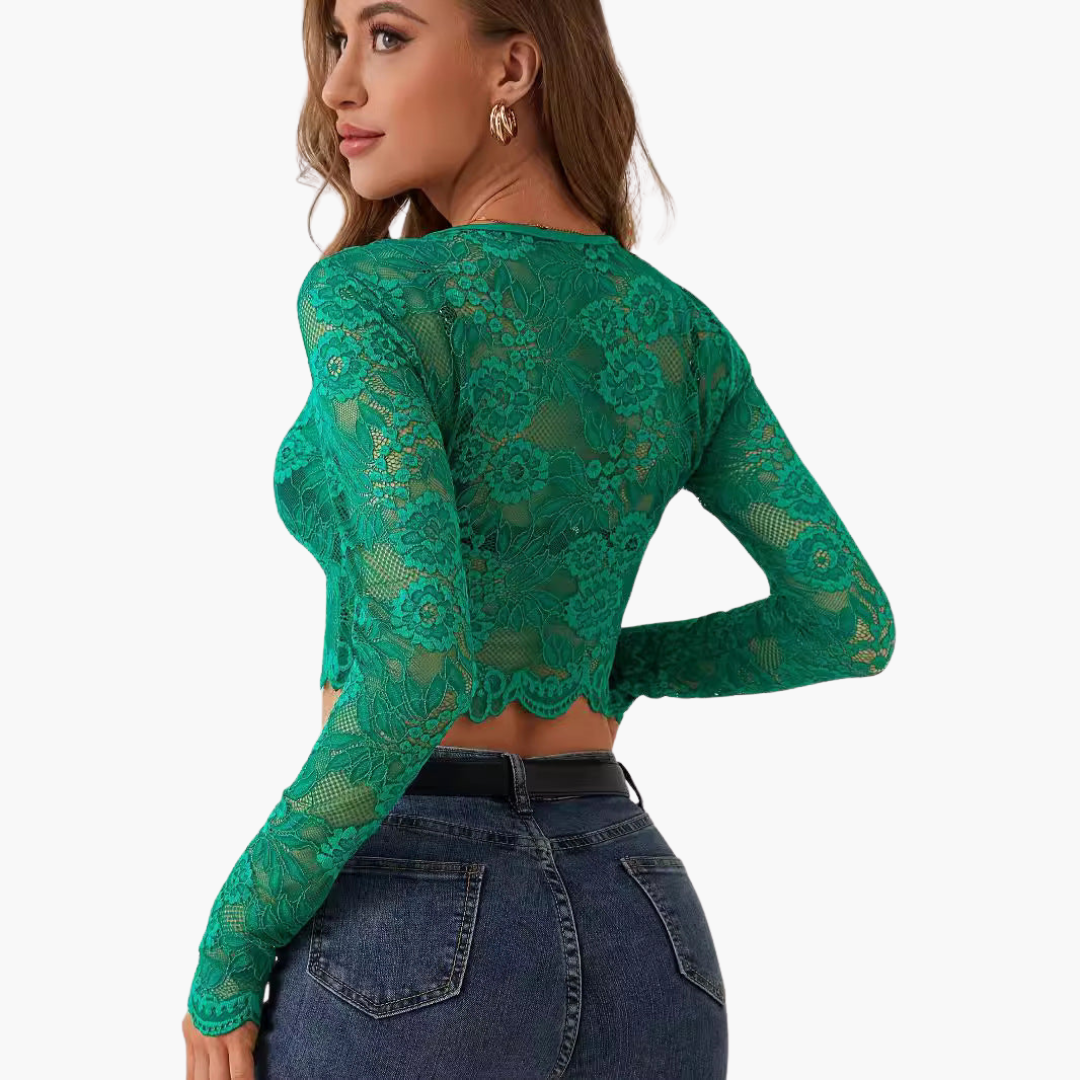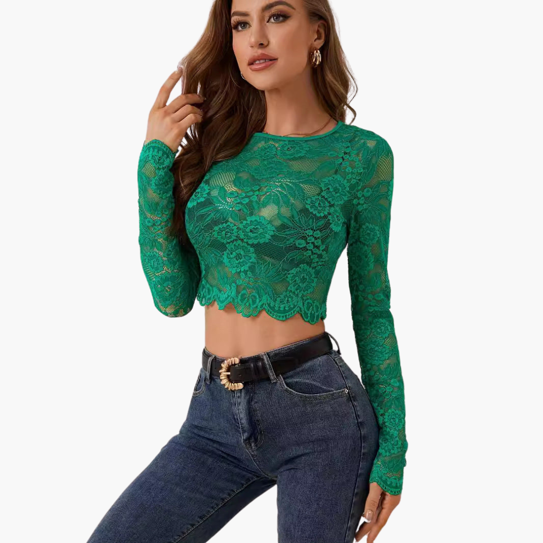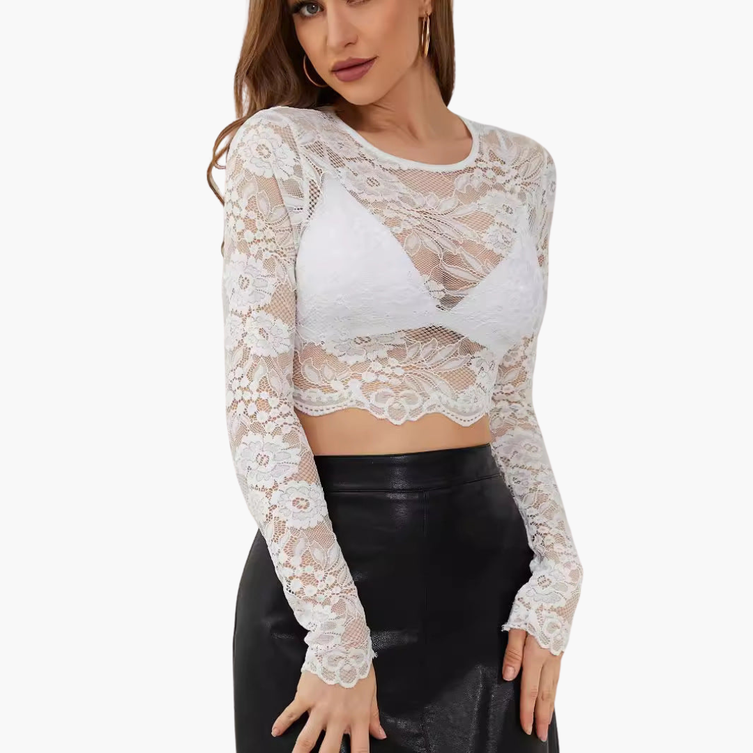 Lace Crop Top with Long Sleeves for Women
